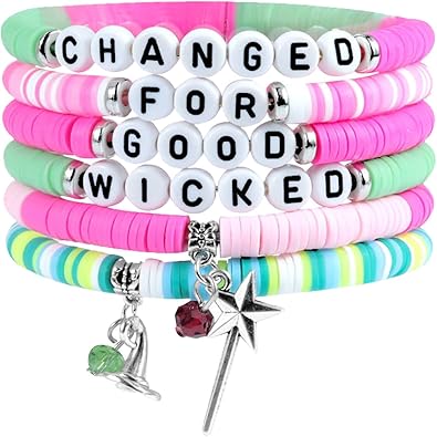 - Wicked Bracelet Set : Comes with 6pcs stackable bracelets in different styles. This whimsical bracelet features a sparkling magic wand and a playful witch hat charm, adds a bright touch of color to your wrist with its vibrant colors and cute accessory design, you can mix them as you wish or wear them alone according to the color.