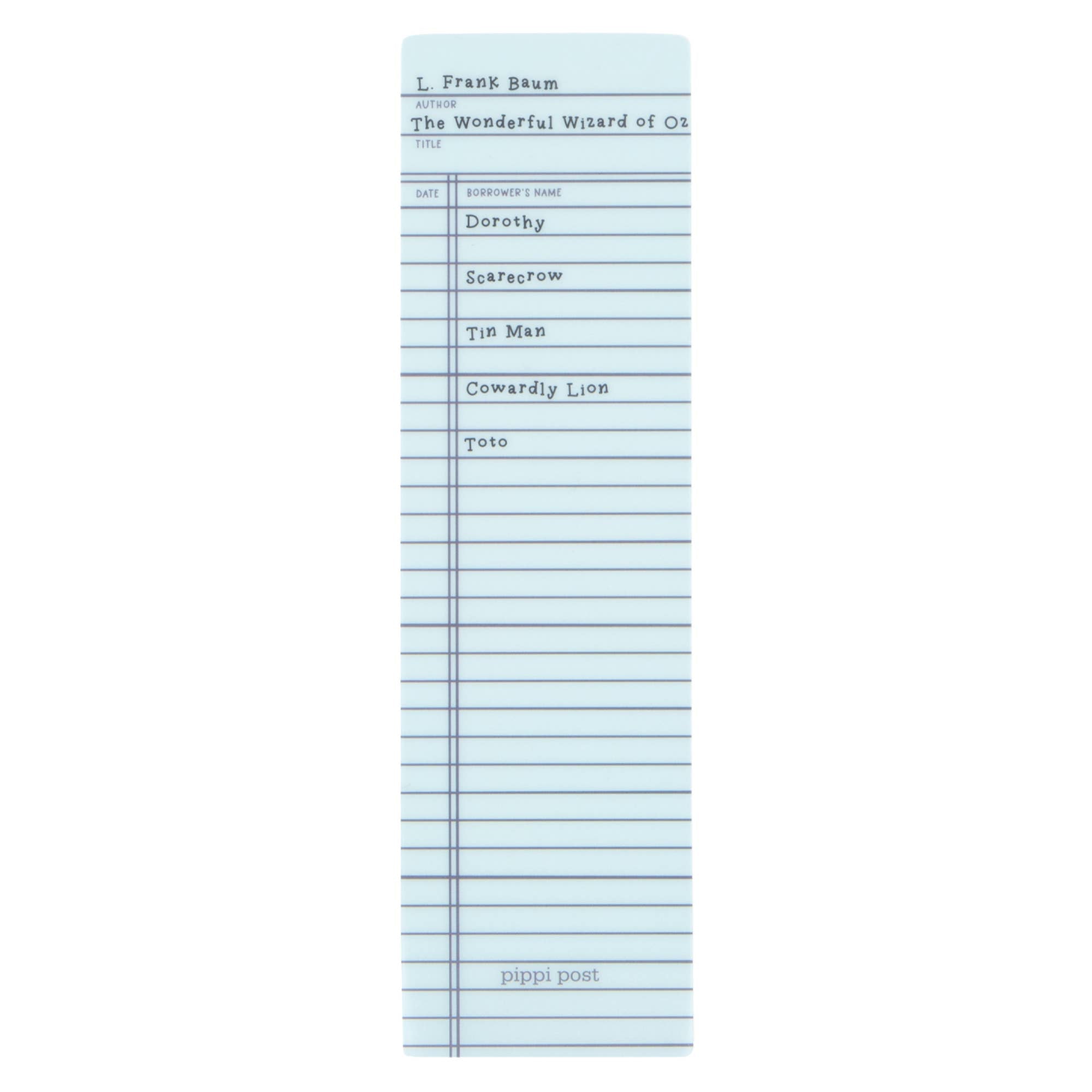 Follow the yellow brick road to your next read with this Wizard of Oz Library Check Out Bookmark! Designed to look like a vintage library checkout card, this transparent bookmark features Dorothy, Scarecrow, Tin Man, Cowardly Lion, and Toto as past borrowers. A must-have for book lovers, it’s perfect for marking your place in a storybook adventure!